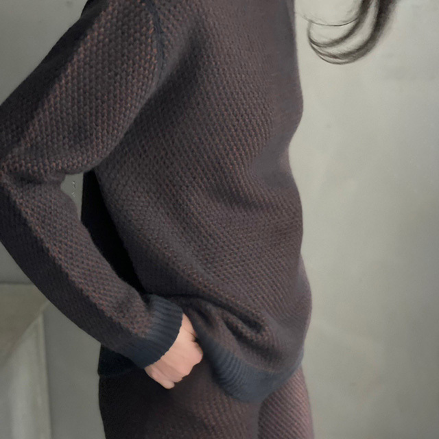 形はシンプルなのに、カシミアの風合い、絶妙なカラー合わせが独特な雰囲気を醸し出します。