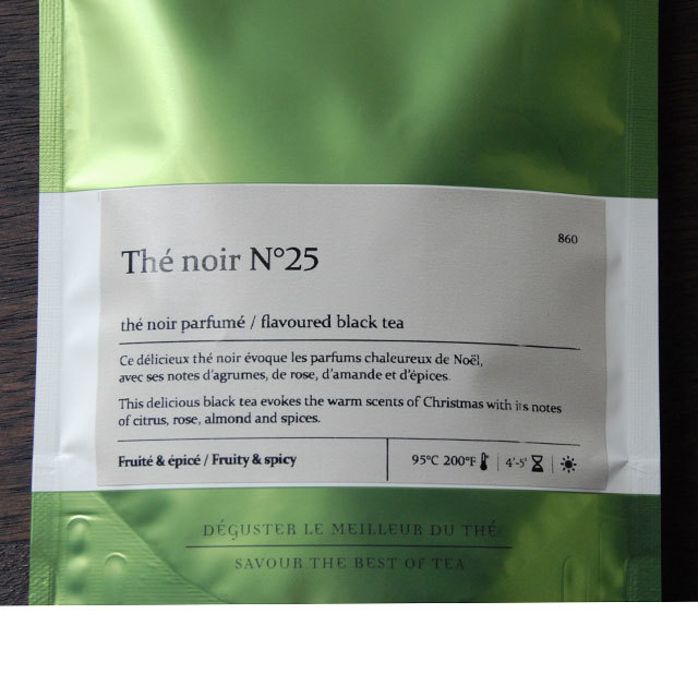 クリスマス時期を中心とした11月-1月限定のお茶です。バラの花びら、オレンジピール、アーモンド、クローブ、カルダモン、バニラの華やかな香りの紅茶です。