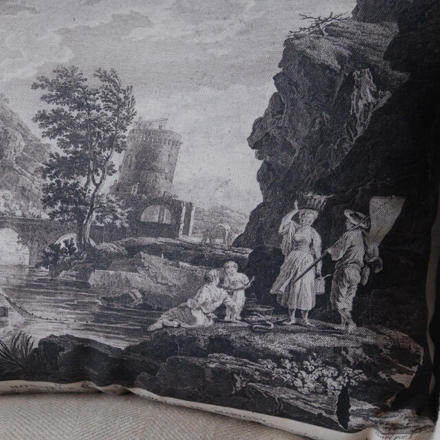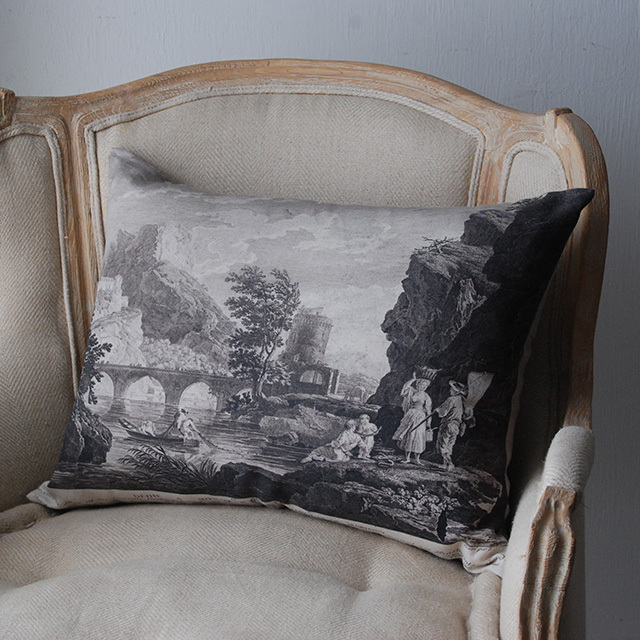 14世紀の絵画をクッションにしました。カバーはリネン100%で背面のファスナーから中身を出し入れできます。
