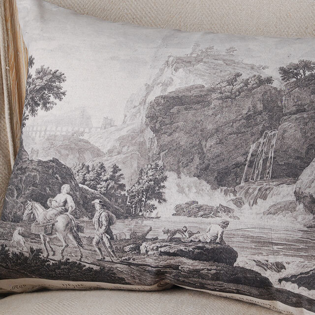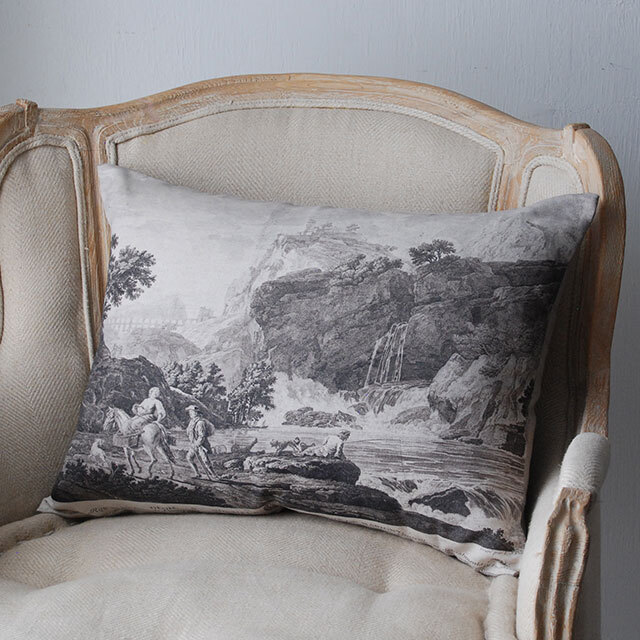 14世紀の絵画をクッションにしました。カバーはリネン100%で背面のファスナーから中身を出し入れできます。