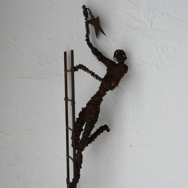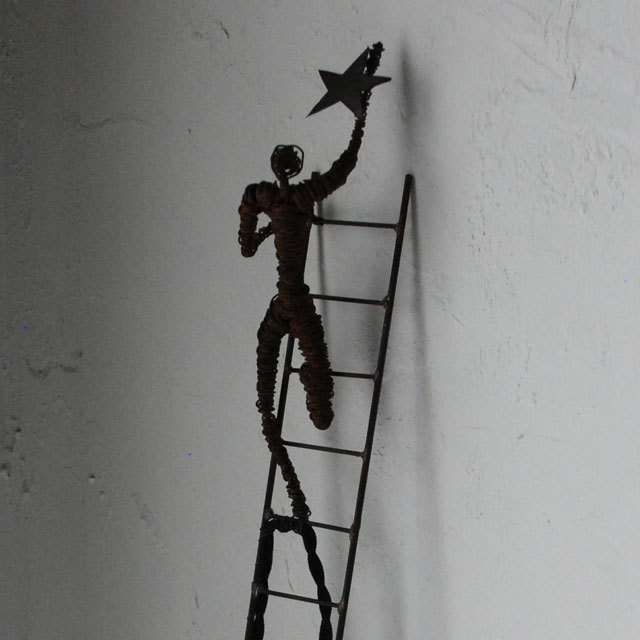 ワイヤーだけで形作られたポエティックな世界をお楽しみください。 ハシゴ部分のライトがやさしい光を灯します。